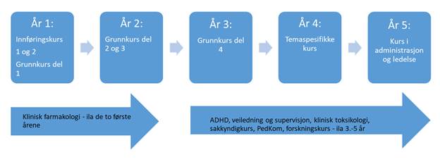 i Rus- og avhengighetsmedisin består av minst fem års tjenestetid, hvorav fire