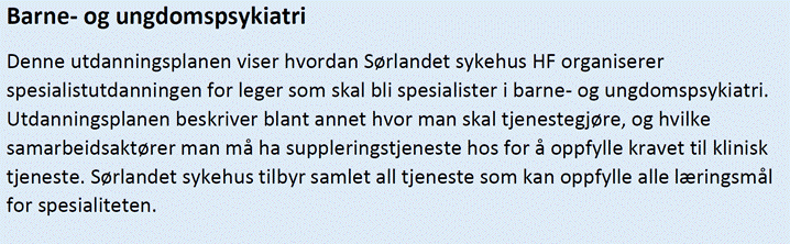 i Agder. Utdanningen innebærer poliklinisk tjeneste, 1 års tjeneste ved ABUP